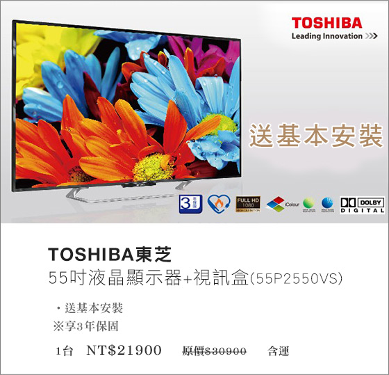 而且TOSHIBA東芝-55吋液晶顯示器+視訊盒(55P2550VS)買越多越便宜呢! 這時候就是找辦公室友人共同集資的時候了!