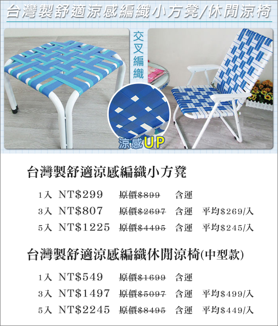 台灣製舒適涼感編織小方凳/休閒涼椅(中型款)